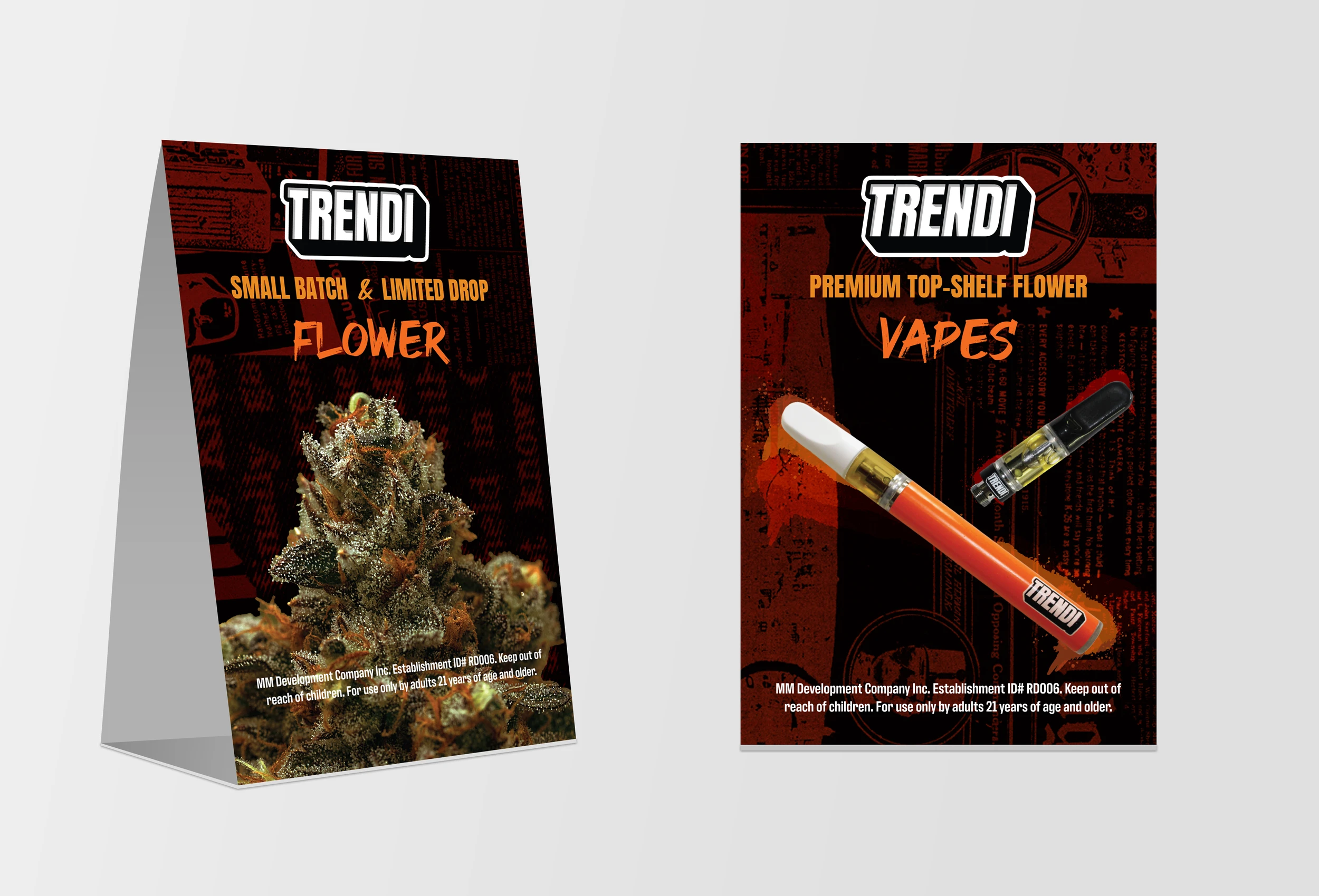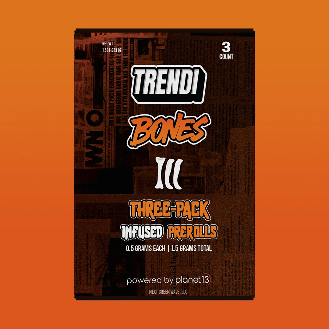 Designing the Trendi product line was all about blending urban culture with modern style. I used edgy newspaper backgrounds with vibrant gradients and created a unique Bones logo to reflect the brand's trendy street vibe. Every element was crafted to make sure each product stands out and captures attention in the cannabis market.