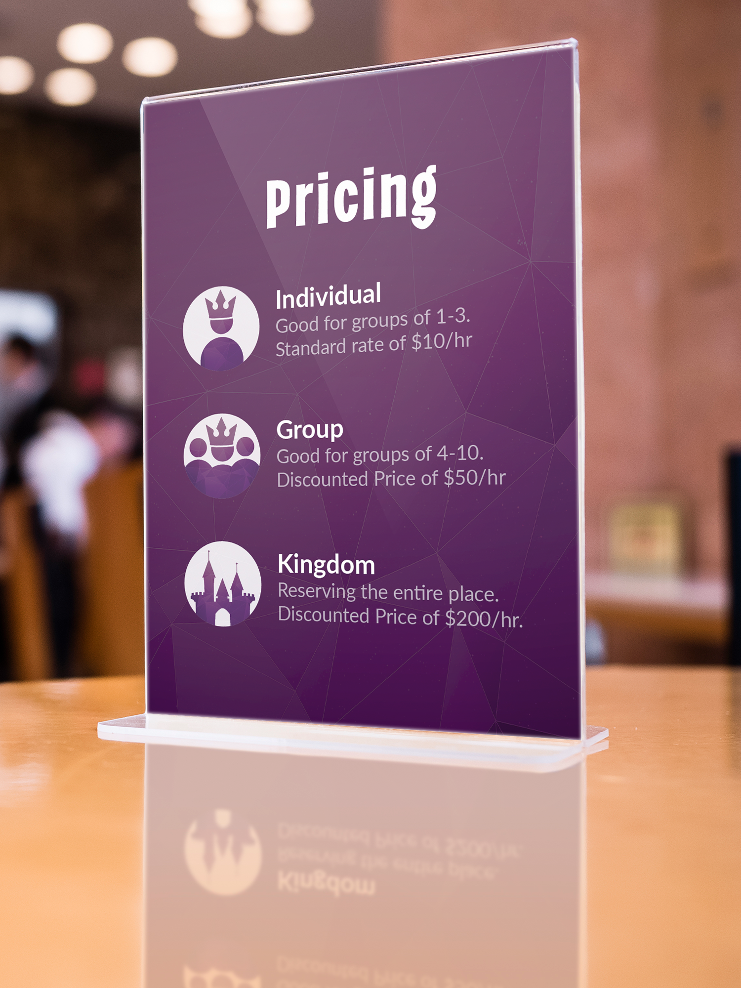 For this semester-long project, the task was to create a hypothetical business specializing in something. I chose to create a gaming café that fully realizes the themes of fantasy board games. I embraced deep purples for my color scheme and meshed together this polygonal gradient texture that I've applied to most of my items. Displayed below are all the different assets I've made for the company's branding identity.